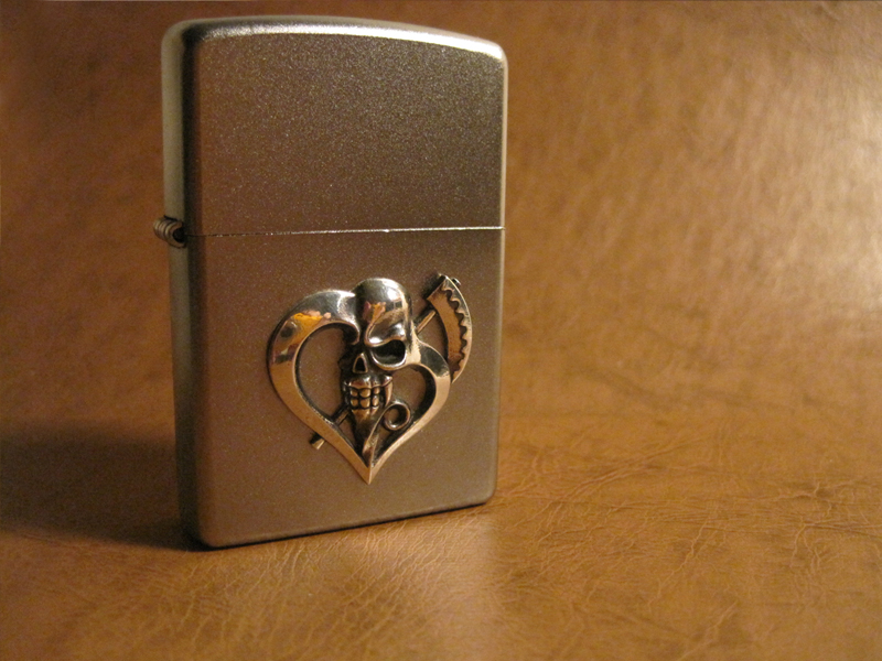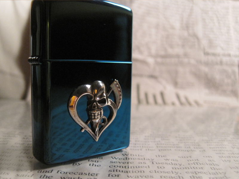 「死を恐れない信念」をデザインしたZippoです。怖さの中にもキュートなシルエットを入れました。
